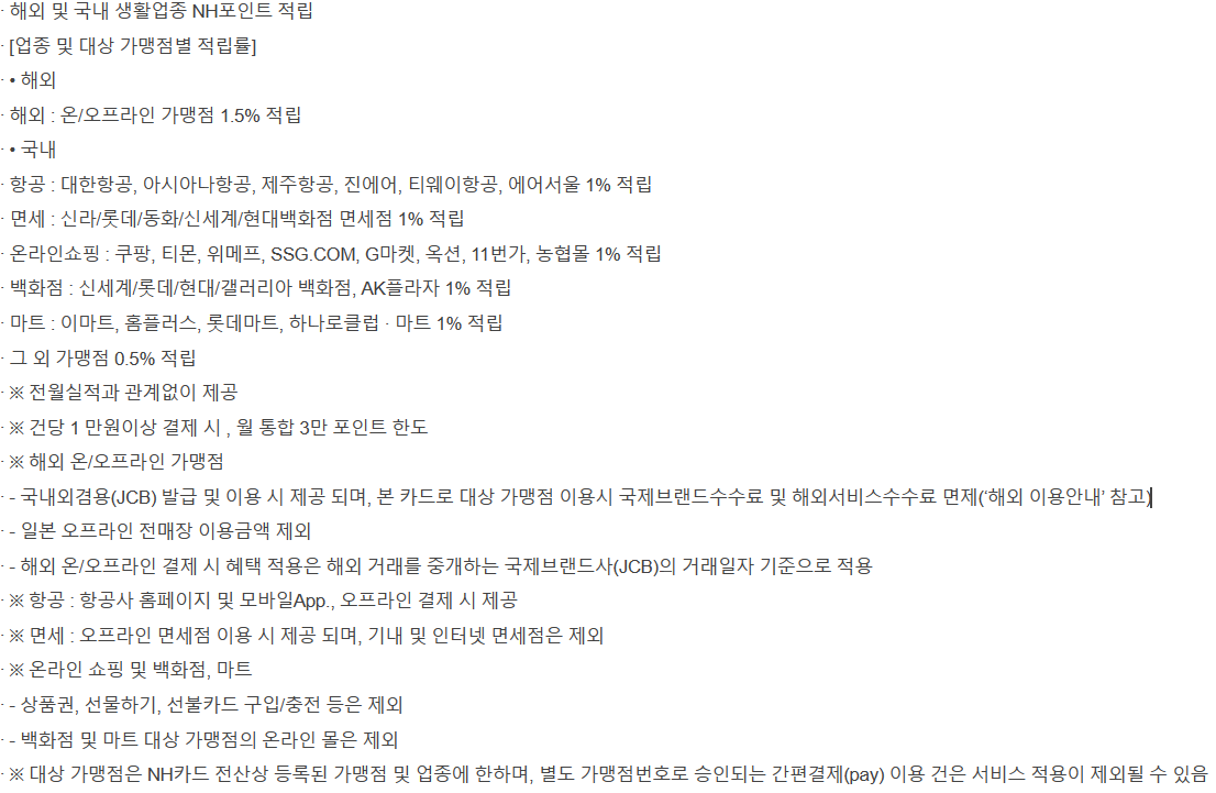 *해외 및 국내 생활업종 NH포인트 적립혜택과 중복적용 되지 않음
