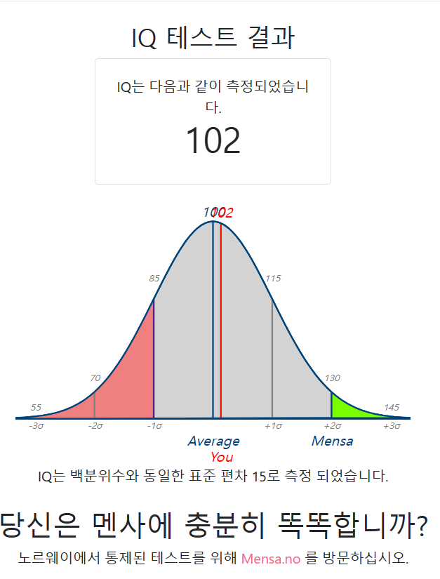 이제 아래에서 내 아이큐는 몇인지 확인해 보겠습니다.