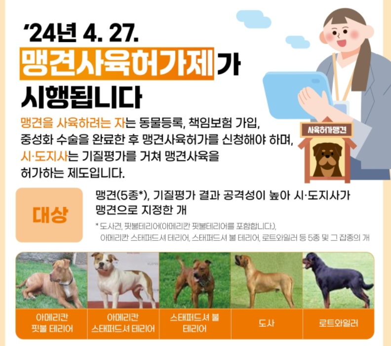 2024년 4월 27일 이전부터 맹견을 키워왔다면 10월 26일까지는 사육허가를 받아야 합니다.