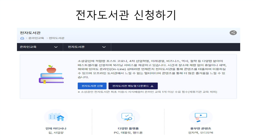 소상공인 지식배움터 전자도서관, 어떻게 이용하나요? (이용 방법 & 신청 방법)
