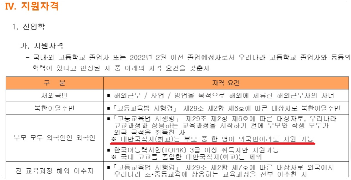 외국인 특별전형을 알아보겠습니다.