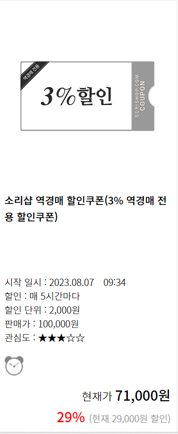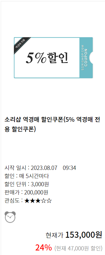 소리샵 역경매는 5시간마다 가격이 다운됩니다.