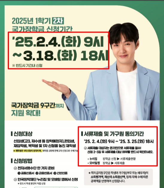 2025년 국가장학금 1학기 2차 신청기간이 2월 4일부터 3월 18일 오후 6시까지로 확정되었어요.