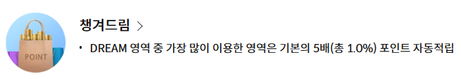 자주 가는 DREAM영역은 기본의 3배인 0.6% 포인트 적립