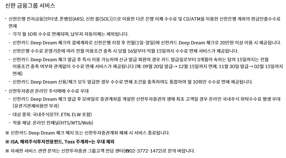 신한 딥드림 체크카드는 연회비가 없습니다. 하지만 혜택은 빵빵하다는 거!