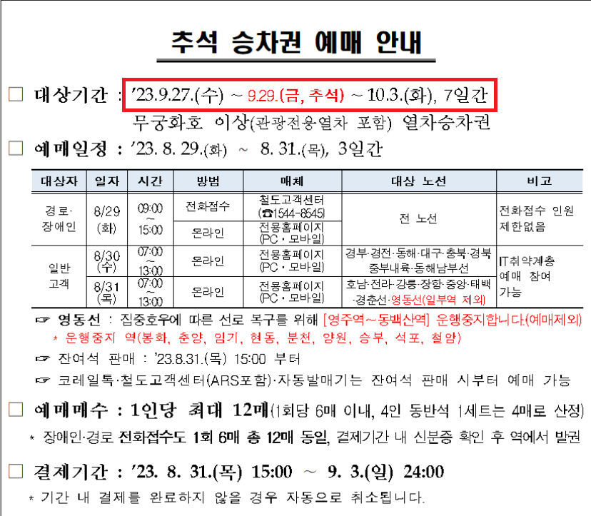 2023년 추석 기차표 예매일정 알아보기. ktx, str 예매일정 알아보기.