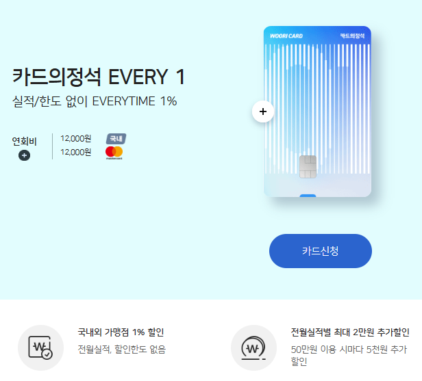 카드의 정석 EVERY1 은 연회비 12,000원이며,